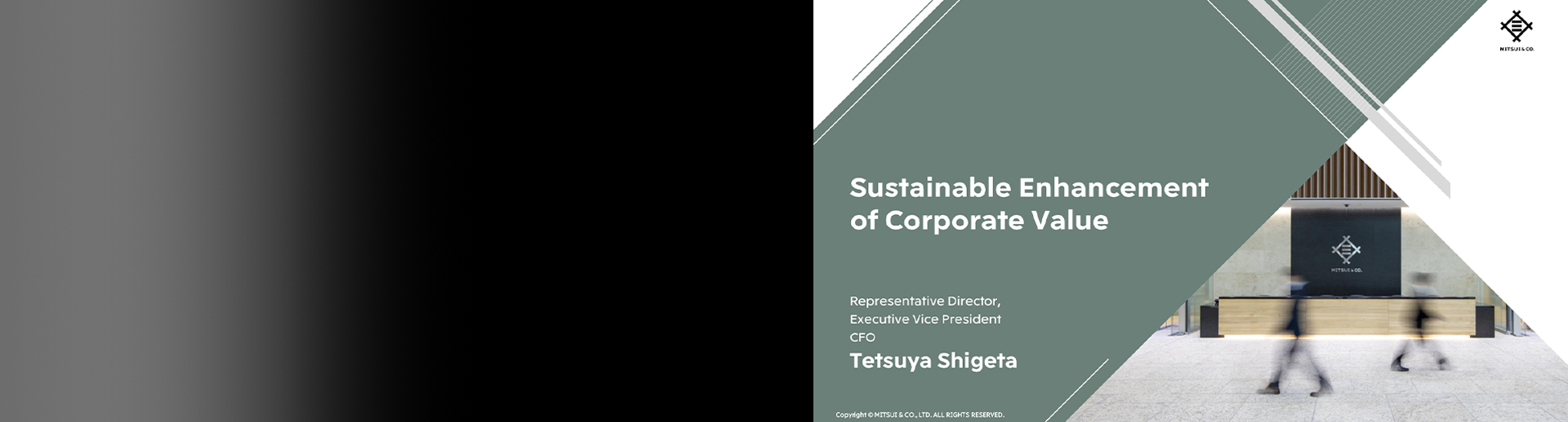 Shigeta, CFO (Shigeta) : I am Tetsuya Shigeta, CFO. Today, I would like to speak about the sustainable enhancement of corporate value.