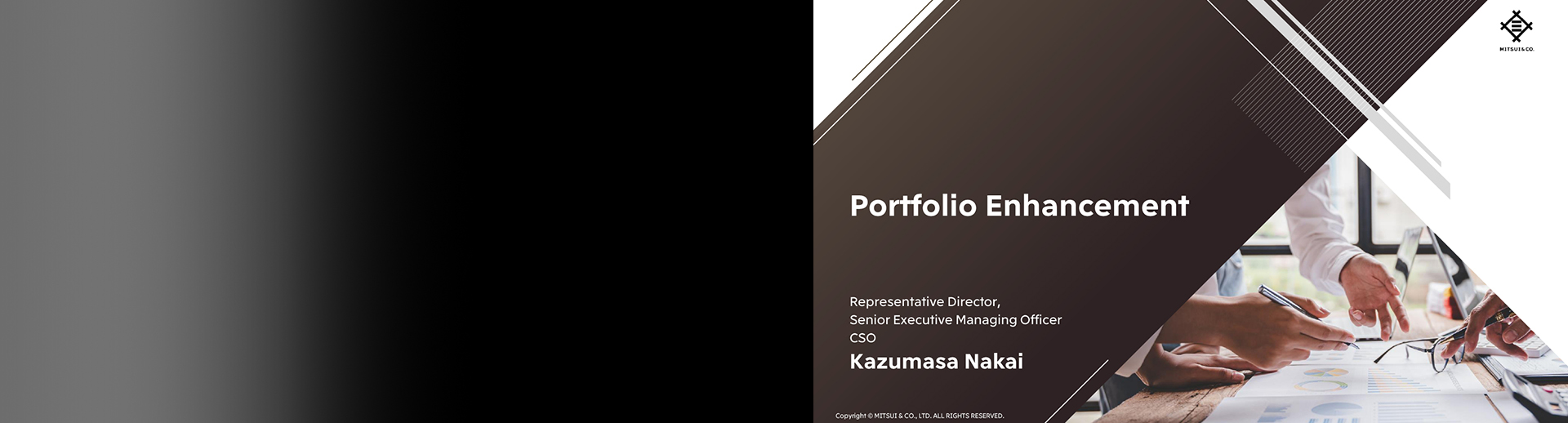 Nakai, CSO (Nakai) : I am Kazumasa Nakai, CSO. Today, I will speak about the progress that has been made in enhancing Mitsui’s portfolio. Specifically, I will touch upon the evolution and track record of portfolio management during the current Medium-term Management Plan (MTMP), turnaround cases currently being addressed, and the initiatives for the next MTMP from my perspective as Chair of the Portfolio Management Committee.