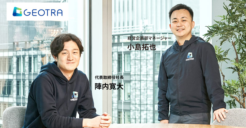 2023年の2月から、GEOTRA(ジオトラ)という会社の営業戦略部で顧客開拓や受注後のプロジェクト管理を担当しています。また中長期的な目線で社会のニーズに応えていくための新規サービス・プロダクト開発の推進や、社内の人事制度設計などの人事関連業務も担当しています。GEOTRAは「データの力で社会を前に進める」をミッションに、KDDIと三井物産の合弁会社として2022年5月に設立された会社です。フルタイムで勤務しているのは9名、インターン生や業務委託の方を含めても30名ほどのまだまだ小さな組織です。
